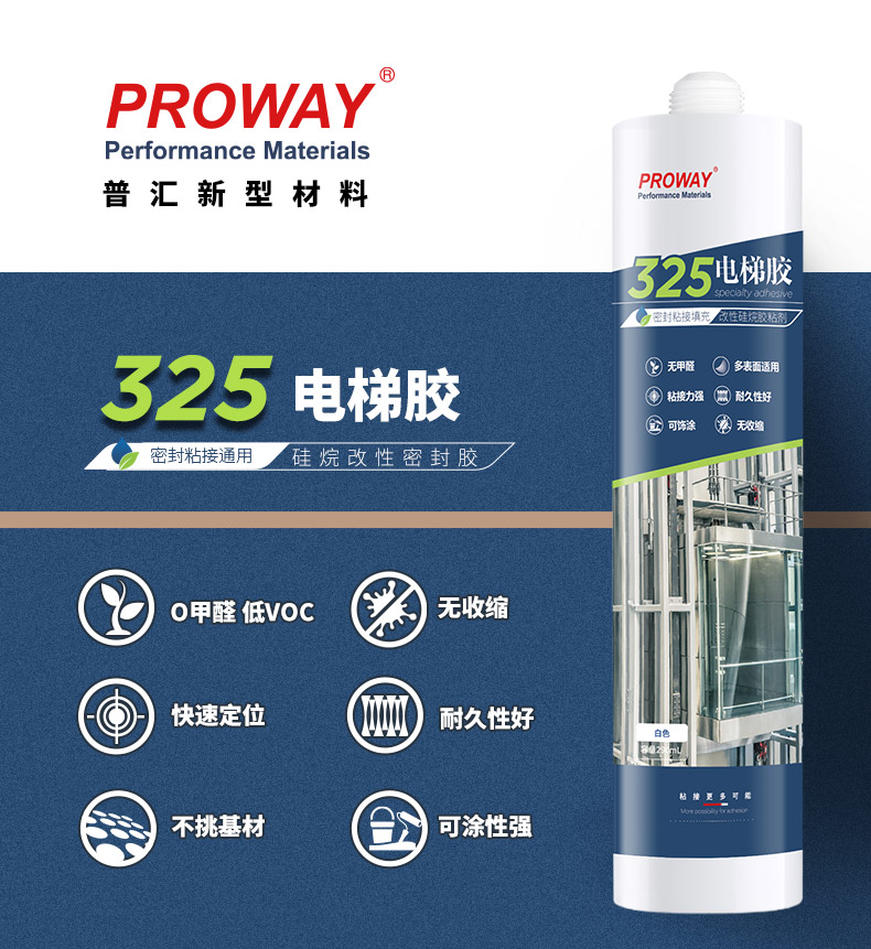 电梯加强筋专用胶是基于硅烷改性聚氨酯聚合物的单组份、可涂漆、抗污染的中性改良密封胶。该产品不含溶剂,对环境无污染,同时对大部分的建筑材料,不需用底涂,都能产生优越的粘结性。